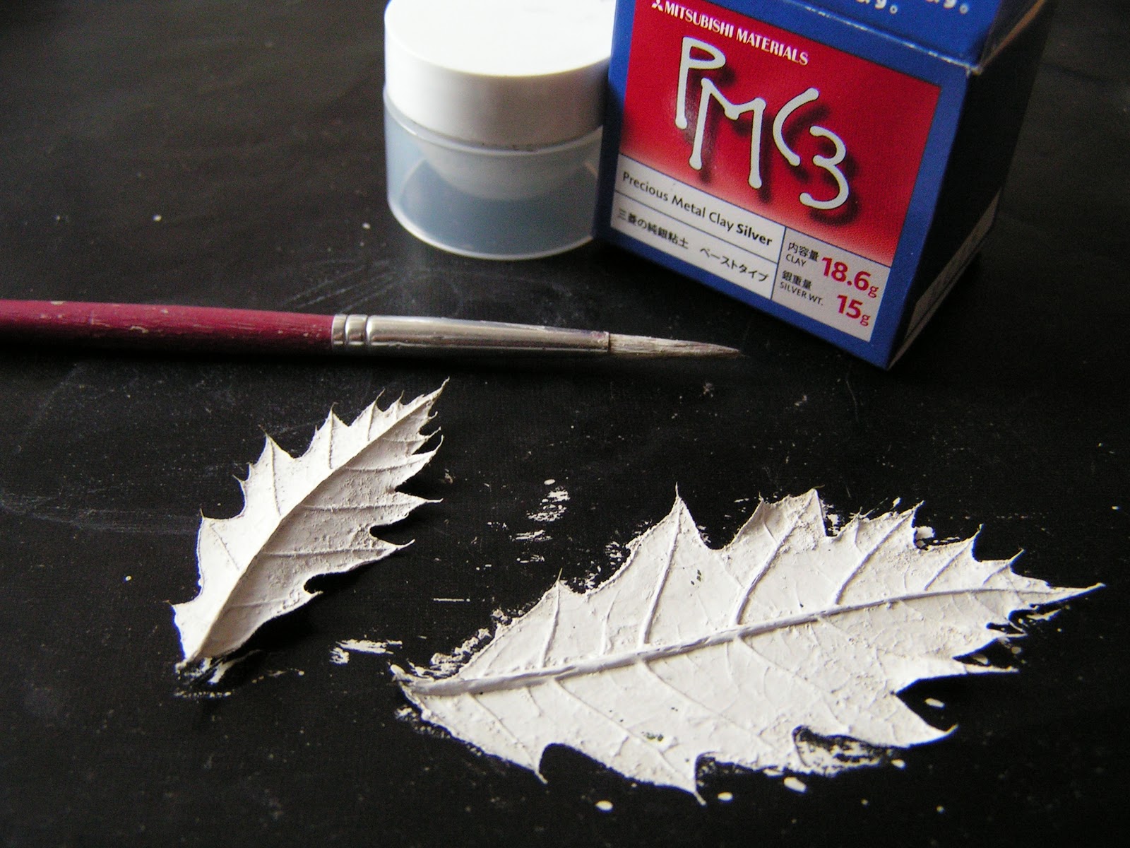However, if you want to use a leaf for embossing into a precious metal clay jewelry piece, you shouldn’t wait until fall. The best leaves are from the summer: neither too succulent, nor too dry. Just mature enough for a good bite. So I went into the nearest park and picked up some oak leaves.