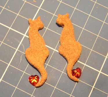 To achieve that I filed them in parallel, squeezing them together to provide close adjoining. And as you see on the right picture, this technique works. The cats are not 100% identical, but these differences can be corrected during silver clay shaping. The tail of the right cat will just receive a little bit extra clay to make it thicker and longer. The cat faces will need some shaping too. But by and large the cats will form a nice pair of silver clay cat earrings.