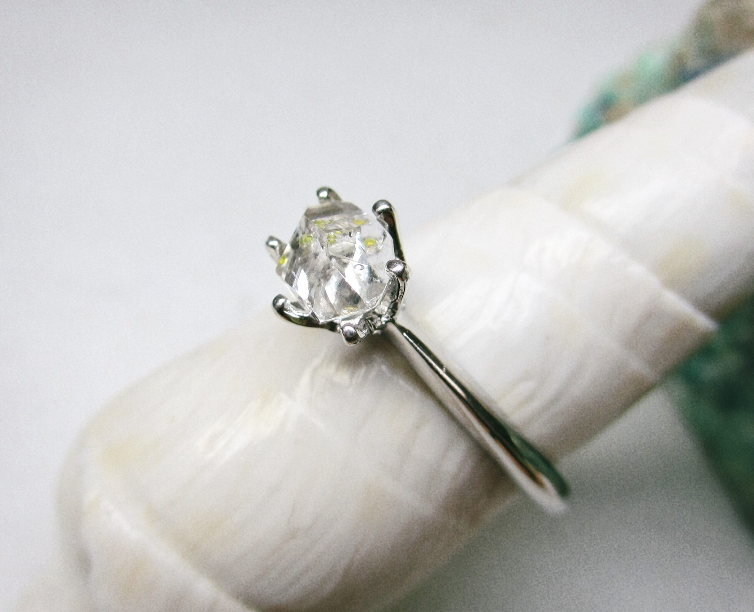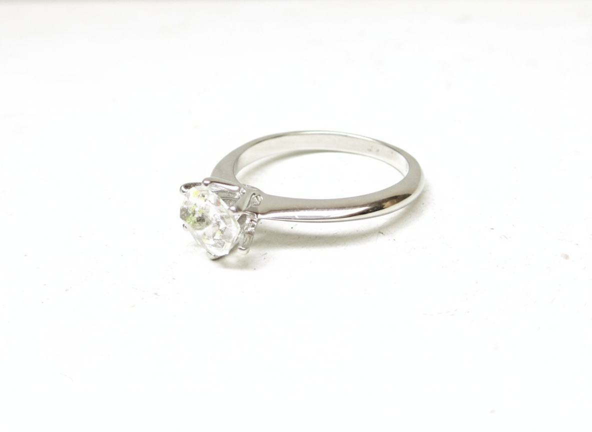 Raw Herkimer diamond quartz ring, sterling silver, size 17,8, engagement ring
