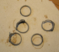 So you see here some rings made of PMC Pro. They fit nicely and are definitely stronger than the regular PMC3 rings. The shrinkage has been approximately 4 US Sizes. The only minor negative detail is the smell – they do smell a bit like copper. I think the experiment has been quite successful and I am certainly going to use this material in the future.